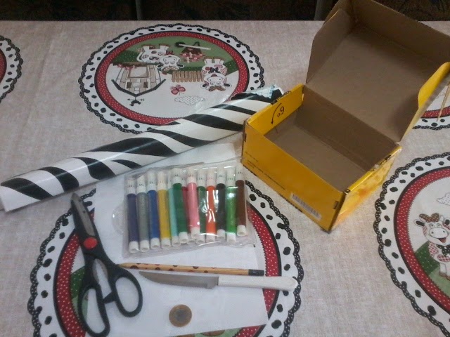 - 1 caixa de papelão do tamanho que quiser que seja o seu cofrinho (eu usei uma caixa dos correios que veio um óculos de sol que comprei);