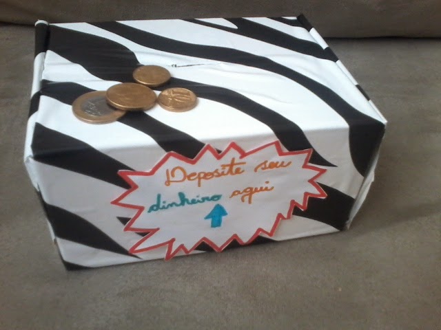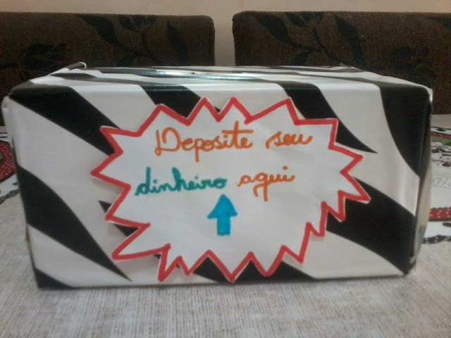 Eu resolvi fazer um cofrinho por que tenho um “plano”. Na bienal do livro do ano que vem, eu quero comprar pelo menos dois livros. Além do dinheiro que vou levar, preciso ter umas moedinhas a mais.