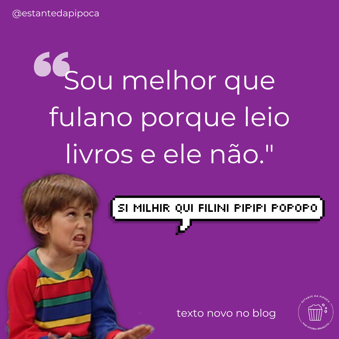 Todo esse texto foi pra dizer que: ninguém é melhor que ninguém só pelo fato de ler livros. Eles não querem dizer nada. Nós conseguimos realizar inúmeras leituras em diversas situações, e eu garanto que em todas elas conseguimos extrair algo bom. Vamos julgar menos e nos preocupar mais em fazer o que nos agrada.