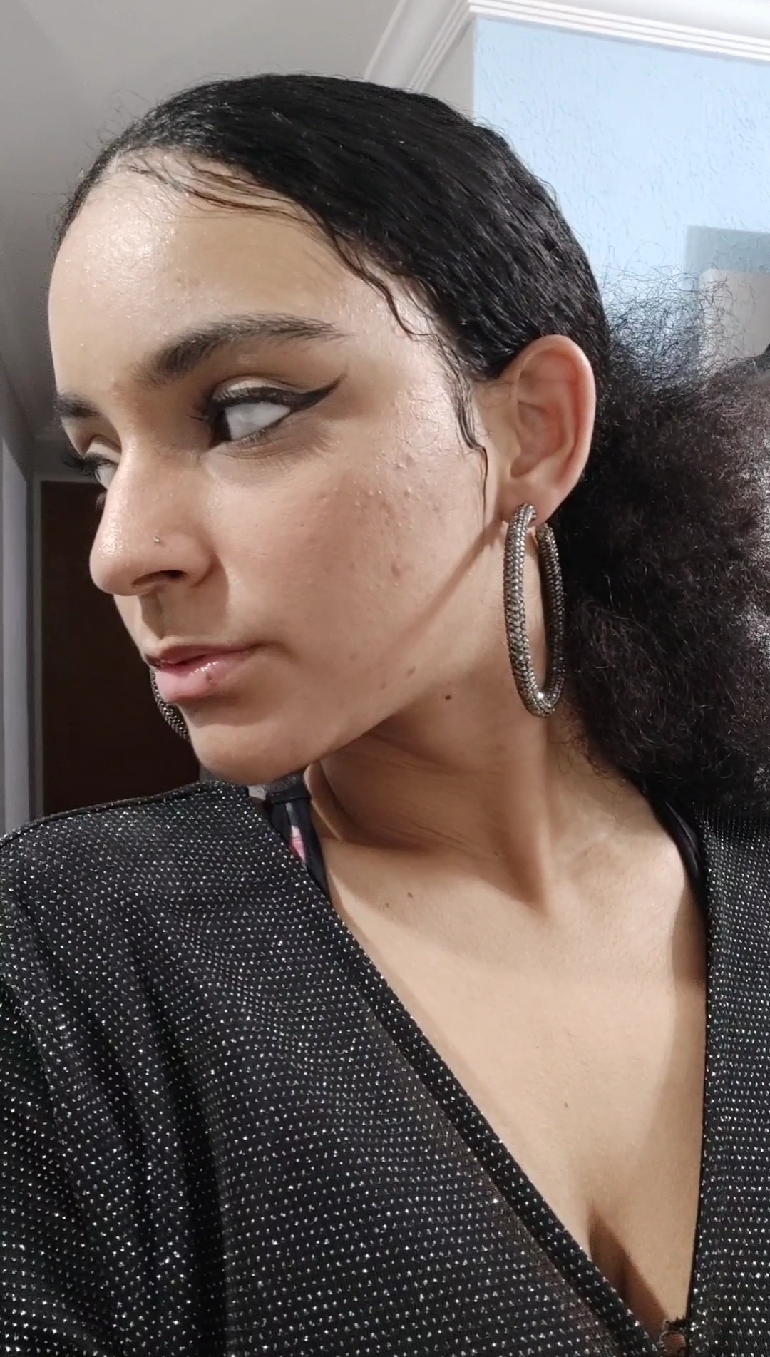 Ah, e tem o meu piercing no nariz, que é um brilho que me acompanha sempre.