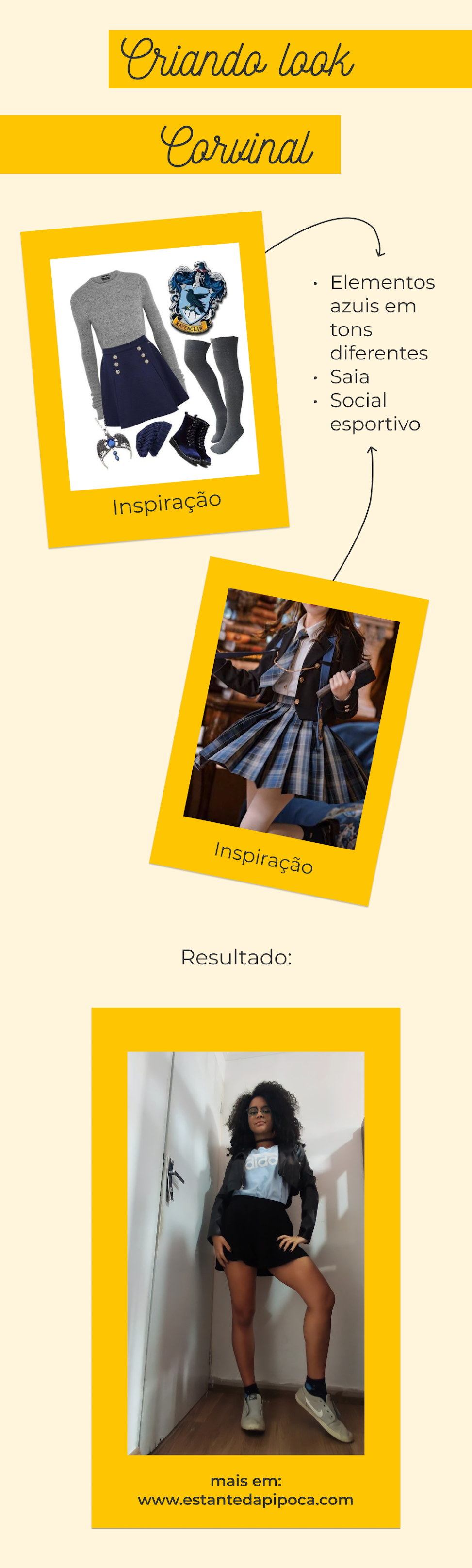 De todos os looks, o meu favorito foi o primeiro, inspirado na Corvinal. De qual você mais gostou? Me conta nos comentários!