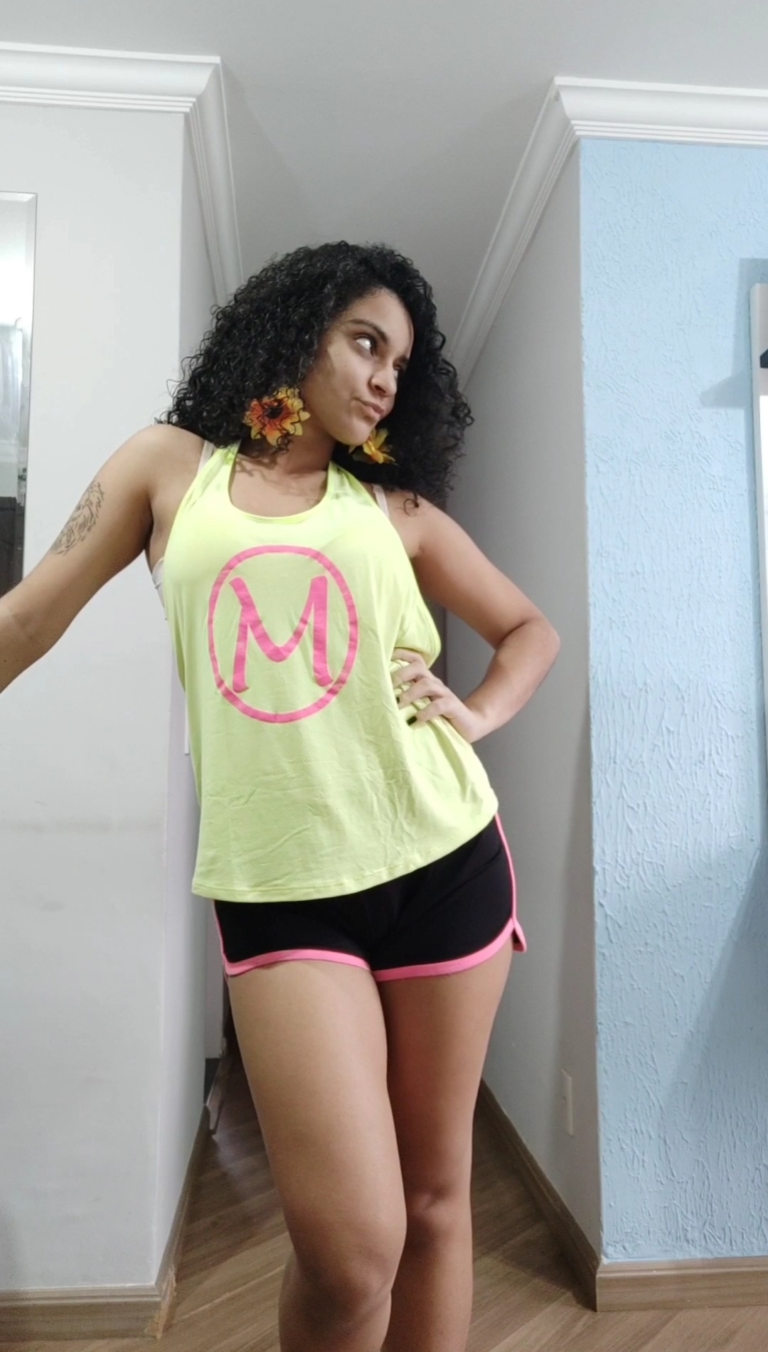 Como eu adoro a combinação de cores complementares, decidi criar um look com uma tríade complementar onde as cores eram: verde (principal), rosa e amarelo. Esse é um look que eu uso no dia a dia mesmo, pra dar minhas aulas, e acho super fofo!
