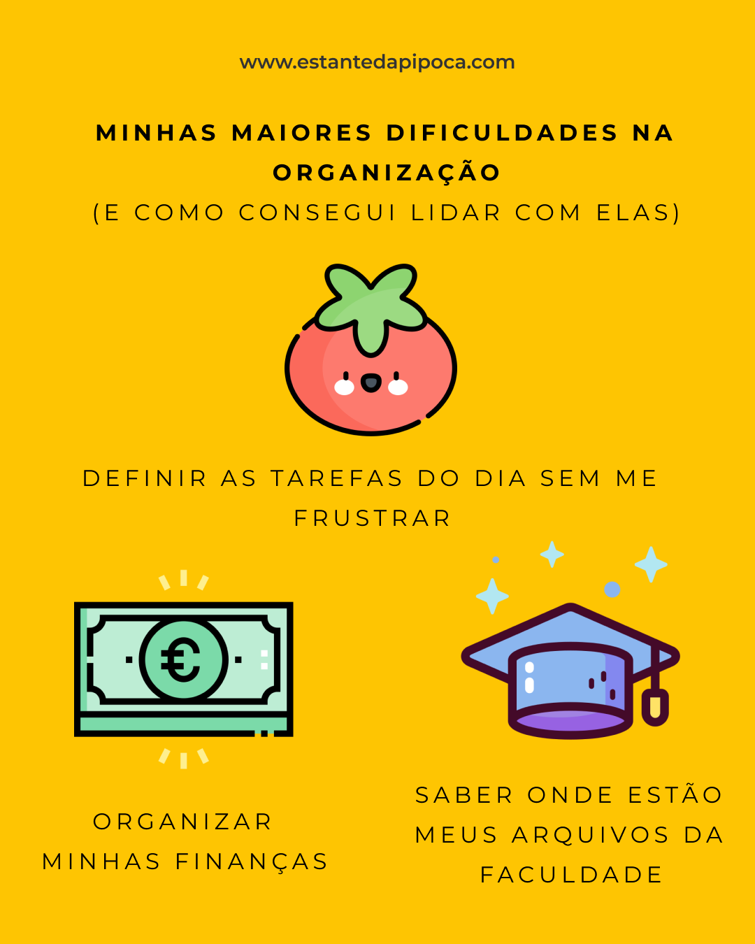 Não vou falar sobre esse método (ainda), mas quero compartilhar quais eram as minhas 3 maiores dificuldades na organização. Hoje eu tiro tudo isso de letra, e fica muito mais fácil de controlar tudo!